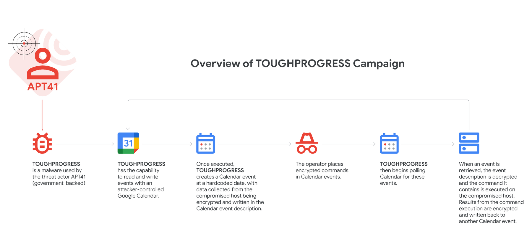 TOUGHPROGRESS can read and write events on an attacker-controlled Google Calendar.